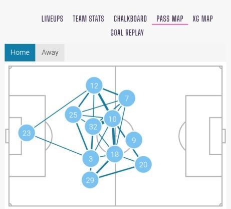 Como vemos en el mapa de pases de los jugadores del West Ham ante el Newcastle con su posición media, Potts se situó cerca de Todibo (25) para facilitar la salida de balón. También hubo poca distancia con Paquetá, quien además por lo que podemos ver gracias al grosor que les conecta, fue el jugador con el que más se asoció Potts, y a raíz de ahí, la progresión del West Ham fue más rápida y cómoda.