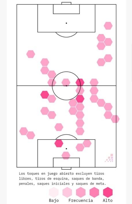 Como podéis observar, donde más impacto tuvo Jordan Henderson fue en la zona central del centro del campo, pero también se movió mucho por el flanco derecho, como tanto hizo en su gloriosa etapa en Anfield.
